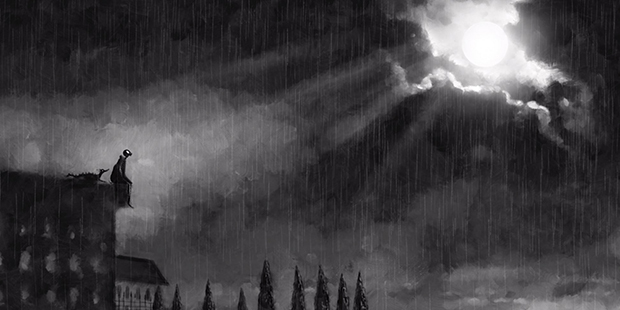 A nivel estilístico, esta Homeless Home me recuerda mucho al cortometraje de Decorado por lo elaborado y, a su modo, preciosista de su animación en blanco y negro —aunque con toques de rojo, cuando se aparece la sangre—, con fondos enormemente detallados y personajes trazados como siluetas en negro, mostrando una clara evolución artística desde los primeros cortos del director y configurando un mundo que ya se siente lo suficientemente complejo a nivel visual por sí solo, sin necesidad de expandirlo en un metraje más largo. Asimismo, continuando con la línea del humor satírico y desencantado que ha caracterizado su obra, en este caso podría decirse que hay una identificación más personal con lo que cuenta. Vázquez, como gallego, es consciente de la relación complicada que tiene muchas veces su comunidad con sus entornos rurales de origen, de la larga historia de migraciones y la conocida como diáspora gallega. Pese a la universalidad de su historia, esta enraíza particularmente en el lugar de donde proviene el director, y en ello se revela una relación ambivalente con su propia tierra que en el cortometraje se traduce en un desarraigo patente.