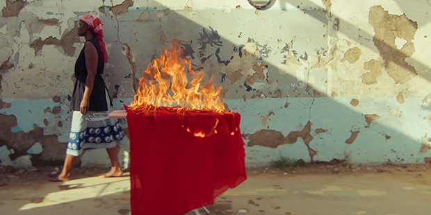 Lo cuenta de forma visceral, golpeándote continuamente con sus imágenes y, a su vez, enamorándote lentamente con su voz, con su acento y con su forma de narrar lo que vemos. Cajas, cajas y cajas llenas de machetes y navajas. Una mujer llorando el asesinato de su hijo. Un titiritero explicándole a los niños cómo su país se volvió violento por culpa del colonialismo. Mujeres y niños tiñendo una larga tela. Un niño con una rueda en llamas. Este sería un pequeño catálogo de las imágenes de la película que me siguen persiguiendo a día de hoy.