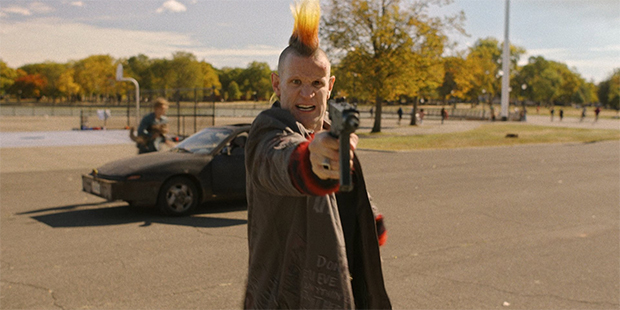 Narrada con esa agilidad que nos permite saltar entre escenas y personajes estrafalarios como si nada —de hecho, podríamos estar ante una extensión del Lock & Stock de Guy Ritchie ambientada en el Lower East Side de Nueva York, aunque sin las piruetas narrativas y transiciones molonas del británico—, Bala perdida no desprecia un buen diálogo si este lo apresura todo, y no permite que su protagonista ande si este puede correr. No es que estemos ante una de esas propuestas que no dan tregua —y es que Aronofsky se las ingenia para llevársela a su terreno y dar un barniz muy propio a la historia de Hank, el protagonista—, pero sí lo suficientemente resuelta y enérgica como para a uno no le dé tiempo a pensar que los Idles es en realidad una banda de inicios del s. XXI cuando la cinta transcurre a finales de los 90. Pero aquí estamos a todo, claro.
