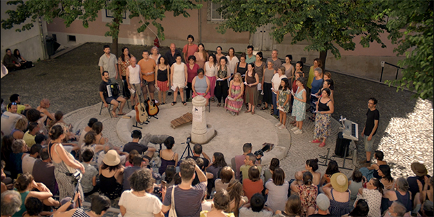 Sobre los rostros de las víctimas de esa violencia colocan Barquero y Alvarado su cámara. En Caja de resistencia, las personas no son maniquíes en movimiento que pasean al fondo de las grandes fotografías históricas, sino el eje sobre el que se articula la impugnación de la historia oficial de la transición pacífica y modélica de España. Los guiones y la documentación que Vergara nunca pudo llevar a la pantalla se mezclan con imágenes de Rocío y de sus trabajos televisivos, con grabaciones realizadas durante sus últimos años de vida, con una entrevista que le hicieron en los noventa en Canal Sur y con la puesta en escena que llevan a cabo los propios Barquero y Alvarado de sus proyectos irrealizados. El pasado y el presente conforman así una continuidad histórica que no permite conocer el segundo si no es a través del primero. Los transeúntes que caminan por las calles en las imágenes del presente lo hacen también sobre un espacio levantado sobre la sangre de los de abajo derramada en el pasado. De la misma forma que la idea principal de la única película terminada por Vergara era la de que las romerías de la virgen del Rocío seguían siendo, al mismo tiempo, un aparato represor por parte de los poderosos y la más clara expresión de la pervivencia de dichos poderosos, en cuyas ritualizaciones estaban grabados todos los abusos del franquismo, en Caja de resistencia los espacios urbanos, las estructuras burocráticas y las riquezas contemporáneas son consecuencia directa no sólo de la dictadura, sino de la impunidad de la que aún disfrutan sus miembros y herederos.