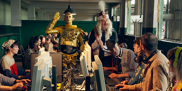 A Radu Jude no se le quedan cortas las casi tres horas de duración para ofrecer un espectáculo estrafalario, anárquico en las narrativas que solicita para su exposición, y donde subraya la apropiación cultural de toda una carga iconográfica que queda lejos de la simbología del folclore subversivo bajo el que nació. El sarcasmo del cineasta no concede aquí límites y para ello mezcla sin rubor un sinfín de formatos; la narrativa convencional queda en ascuas bajo un torrente de estilo en el que veremos proyectadas secuencias compuestas por IA (sacando a relucir el vacuo empaque artístico de esta popular tecnología), escenas aisladas de comedia extravagante, así como una variedad tonal que origina un mensaje global de pesimismo, con un futuro en el que Jude nos pretende advertir de lo estéril del audiovisual que está por venir, capaz de subvertir los símbolos clásicos de la cultura para efectuar una revisión superficial y contaminada provocada por la falta de ingenio y creatividad. Una visión decadente en el que la voracidad artística da paso a una tergiversación provocada por la emulación vacua de fondo y forma, incapaz de originar una creación personal.