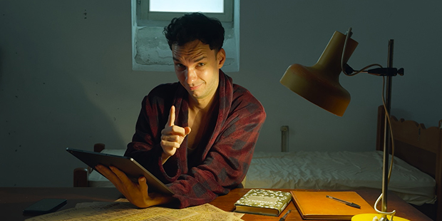 Por si no hubiera quedado claro, no estamos ante ninguna adaptación en clave de cine de terror del mítico vampiro, pero sí de una traslación apócrifa del mito a través de una estructura episódica en el que confluyen diferentes estilos, extravagantes sentidos cinematográficos e inmersiones narrativas de opuesto calado. Una manera de ver el cómo la figura de Drácula y su idiosincrasia han sido adaptadas al transcurrir de los tiempos y a la era moderna, donde Jude nos presenta a un cineasta frustrado incapaz de plasmar artísticamente su traslación del mito y del cómo hace uso de la celebérrima inteligencia artificial para salir del paso del bloqueo creativo; un segmento del relato en el que estas inteligencias cibernéticas nos son presentadas como un vacuo intento de creación en el que se muestran sus carencias, otorgando visiones enajenadas e iconoclastas de la figura cultural de la que se está dando cuenta, como una manera de poner sobre la mesa la saturación iconográfica de los ítems culturales en estos tiempos digitales. Además de eso, tenemos otras intrahistorias como la que un intérprete de Drácula para un espectáculo de turistas y su damisela que acaban siendo perseguidos por los propios espectadores como si de una caza de brujas del siglo XV se tratase, que sirve para comprobar el cómo el capitalismo instigador del siglo XXI ha ahogado los mitos hasta conseguir una pérdida total de identidad, dejándolos a merced de los nuevos lenguajes de la modernidad que incitan a fomentar versiones distorsionadas de su propia idiosincrasia.