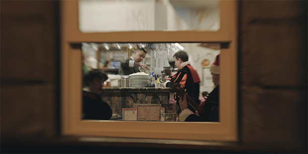 Me he vuelto a enamorar. Había dos opciones para esta película: hacerla en verano, donde pones la cámara y te la tiran porque hay mucha gente, y sería una especie de denuncia del turismo masivo; o hacerla en invierno, y tenía quería localizarla ahí, porque hay algo de la soledad del viaje, la Navidad… No quería hacer un filme sobre la “turistificación”, que ya existen y hay algunos muy buenos. Mi trabajo con las postales no me llevaba allí, tenía que hacer otra cosa más atemporal. Esto me llevó a tener muchas dudas con la película, y he trabajado para que no fuera sobre Santiago de Compostela, y soy consciente que es de allí; me refiero, más bien, al hecho de que yo no quería que fuera un homenaje a la ciudad, sino que tratara sobre el mundo.