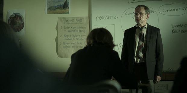F (2010) tiene uno de esos inicios cómplices en los que situar una problemática actual para la sociedad, un puñado de personajes protagonistas y una complicidad familiar que corromper. La película se enmarca en un escenario único —gigantesco, para aquellos que no lo puedan aceptar como claustrofóbico—, un instituto de secundaria inglés donde un profesor, desoyendo las normativas de suspender reiteradamente a sus alumnos con la fatídica calificación “F” se lleva un bofetón de uno de ellos y así, empieza una espiral autodestructiva con la que odiar a los adolescentes, al sistema y a sí mismo. Un personaje tan prometedor cae en manos de David Schofield, uno de esos actores secundarios que aparecen en todas partes pero que en contadas ocasiones tienen la posibilidad atrapar papeles protagonistas. Su nombre es Robert Anderson y tiene algo que objetar contra los jóvenes.