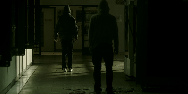 Lo que podría derivar en un drama de hombre destruido por las circunstancias y un sistema educativo incapaz de formular un diálogo entre alumnos y profesores, cambia pronto de ritmo ante la desquiciada mente del profesor Anderson y su obsesión con la seguridad. Un poco en base a la idea de Asalto a la comisaría del distrito 13 —por aquello de entender el acecho invisible, no por intentar reconstruir una vez más el gran logro de Carpenter—, Johannes Roberts formula una tensión que va desde el mejor juego infantil, con la idea de adolescentes instigando un instituto cualquiera, hasta la masacre más cruda y extremista que se le podía ocurrir al director. Roberts es un fanático ineludible de la casquería y aunque en un inicio la película sorprenda por esas escenas fuera de campo de las que conocemos poco más que el resultado y que hacen pensar en un ajustado presupuesto, este mismo viene aderezado con una crueldad impropia del acecho al que se supone están haciendo frente unos pocos personajes que hacen horas extras gratis. Igual es un mensaje subliminal.