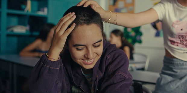 La directora quiere que Carmela sea única y no un número más con el que acrecentar un mal común. Empieza la película y los vivos ojos de la chica miran a su padre con complicidad, con admiración, y muestran a ese tipo con una personalidad única (es salvaje la mimetización de Julián Villagrán con alguien tan voluble y temperamental) que es una prolongación que roza el amor de su hija con efusividad. Pero Carmela vive rodeada de detalles en esta separación. No nos ofrece Júlia de Paz una historia acomodada, hay signos de violencia y sobreprotección allá donde mires que permiten intuir lo que Carmela, por el momento, no ha tenido que ver. También hay luz, muchísima luz que acompaña sus pasos, momentos divertidos y audaces, como ese corte de pelo que se presenta como un momento cómplice sin control alguno, algo en lo que inclinar el paso del tiempo para la historia, o ese tiempo que comparte con sus amigas, como una bocanada fuerte de aire con la que inyectar otro tipo de recuerdos a algo que será permanente e imborrable en su vida.