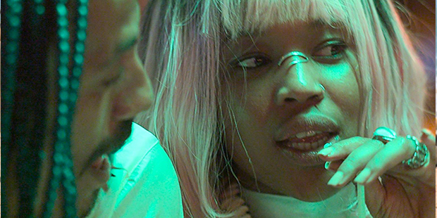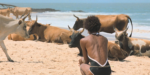 Así, Pinho es capaz de traducir el desconcierto que su protagonista siente a medida que va adentrándose en ese espacio (que su ojo convierte en) “liminal y exótico”, usando teleobjetivos que le permiten insertarlo dentro de unos encuadres sin profundidad en los que la realidad permanece asfixiada y aplastada y en los que sus movimientos se transforman en gestos estáticos; y, pocas escenas después, exponer a través de un sencillo paneo lateral la violencia colonial que define uno de sus intentos de seducción a un guineano. Las imágenes de La risa y la navaja devienen así un lenguaje bífido: unas son la expresión de una mirada culpable y las otras señalan no sólo su culpa, sino también la hipocresía que las envuelve. Es la de Pinho, por tanto, una obra en constante estado de contradicción que se expresa en forma de tensión ambigua: el punto de vista de una escena y las acciones de Sergio nunca están claras hasta que todo ha terminado. Los espectadores tardan en saber si lo que están viendo es el reflejo deformado de la realidad que percibe el protagonista o una indagación crítica realizada desde los márgenes por el propio director.