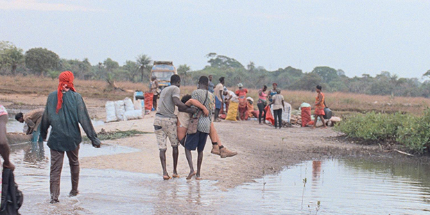 Hay, por tanto, una tensión constante en las imágenes de La risa y la navaja, que proviene precisamente de su imposibilidad de dejar de mirar una realidad desde una posición de privilegio pese a tener plena consciencia de sus efectos negativos. En ese sentido, el punto de vista adoptado por Pinho contrasta con los escogidos por Albert Serra en Pacifiction y Lav Díaz en Magallanes, películas ambas que desnudan la lógica colonial de sus protagonistas sin participar de la misma. Mientras que Serra exteriorizaba la decadente mirada de su protagonista a través del trabajo con la luz y los movimientos internos y externos del plano, la posición en la que colocaba la cámara conducía a un extraño distanciamiento que favorecía una observación crítica de los hechos narrados. Díaz, por su parte, se servía de un narrador compasivo que le permitía capturar la desesperación, el cansancio y la desolación de los colonos sin que, por ello, la violencia sufrida por los pueblos colonizados dejase de estar en todo momento en el primer término del encuadre —literalmente—. Pedro Pinho se sitúa en un punto intermedio entre ambos, alternando escenas en las que la subjetivación de la narración es total con otras en las que el punto de vista se quiebra para poner en cuestión las acciones del protagonista desde una mirada ajena.