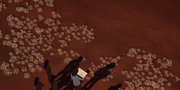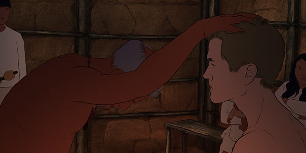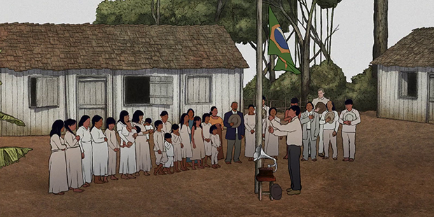 En ese sentido, Nimuendajú se encuadra en una cierta tendencia moderna a narrar historias y eventos biográficos reales, con un estilo cercano al docudrama, a través de la animación. Como suele suceder en estos casos, se opta por un estilo de dibujo sobrio y cercano al realismo, que trata en todo momento de corresponderse visualmente a los personajes y entornos reales que está representando. En este caso, la animación utiliza como base la rotoscopia en unos diseños realistas, logrando un acabado eficaz y bien realizado que demuestra una visión estética clara y distintiva, algo que no es tan común en este tipo de enfoques hacia el medio animado. Aún así, con este tipo de cintas siempre creo que es lícito abrir un debate acerca de la pertinencia o arbitrariedad de la animación como medio representativo, y esta no es la excepción.