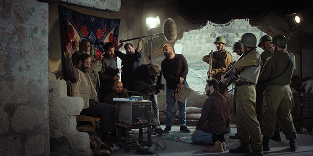 La compleja relación entre ficción y realidad se acentúa todavía más en la segunda mitad del largometraje. Después de que las consecuencias de los negocios ilegales de los protagonistas les alcancen, Yahia acabará reconvirtiéndose en actor y protagonizando “la primera película de acción rodada en Gaza”. Así, acompañamos a Yahia en un rodaje en el que las armas de fuego son reales, porque son las únicas que tienen, y los actores que interpretan a soldados israelís se niegan a mancillar la bandera palestina. Realidad y ficción se confunden una y otra vez en un juego cómico que también tematiza explícitamente y expande las preguntas que suscitaba la primera parte: ¿cómo hacer cine, y qué cine hacer, bajo una ocupación? ¿Sirven las imágenes para resistir? ¿Qué imágenes, entonces, y a quién pertenecen?