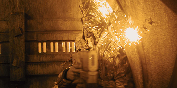 Dicho esto, hay que destacar lo bien filmadas que están las escenas de acción, especialmente en el prólogo, donde se nos muestran las habilidades de combate del grupo en lo que parece ser la Guerra de Irak. Una vez metidos en el espacio, o mejor dicho en la nave, es cuando empiezan los problemas. Y es que si al final quieres montar una película de guerra alien, qué menos que poder verlos más o menos claramente. Por ello, para tapar la posible pobreza de la recreación de los monstruos y que no sea al señor disfrazado de ‹porexpan›, todo resulta demasiado oscuro, tanto que por momentos resulta imposible distinguir qué está pasando, a quién disparan o a dónde van.