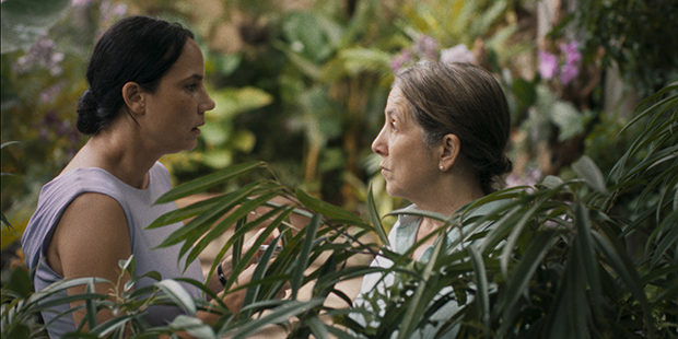 Lo mejor de la película descansa en Paulina García (y el uso de ese verbo no es casual). Su interpretación de la señora Mercedes —contenida, pero de una emotividad basada en gestos mínimos y una mirada poliédrica— logra condensar los altibajos de una mente que se deteriora a la vez que se aferra con fuerza a los recuerdos que le quedan y a seguir cuidando de su jardín tropical (…sí, sí, eso he dicho). Momentos como su regreso a dicho jardín, los intentos de recuperar o no perder todas las partes de un pasado que se le escapa, revelan capas de dolor sin necesidad de recurrir al drama puro y duro; aquí no hay énfasis. También es notable la manera en que la película captura los efectos reales de la demencia: la ya mencionada mirada perdida que aparece de la nada, las transformaciones bruscas de carácter, la desesperación de la familia y la recurrente y también mencionada paciencia —a veces sometida, a veces cariñosa— de quien cuida.